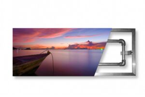 Het frame wordt geleverd inclusief koppelstukken, zodat je deze kan bevestigen aan een stenen wand, betonnen muur of aan damwandplaten. Het spandoek trek je over het doek heen en bevestig je met spanners strak aan de achterzijde.