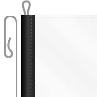 Naar wens werken we je reclamevlaggen af met een band, koord en lus op de uiteinden zodat je de vlag eenvoudig kunt monteren. Het is ook mogelijk om de reclamevlag af te werken met een band en haken op de uiteinden van de mastzijde. De haak is van plastic materiaal. Welke afwerking je ook kiest, je kunt altijd kiezen tussen een witte of zwarte band.